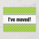 Neue Zuhause bewegte Postkarten | apfelgrüne Punkte. Benutzerdefinierter bewegter Text; Wir sind umgezogen! Fügen Sie Ihre neue Adresse auf der Rückseite ein. Moderne Karten für Zuhause und Business.