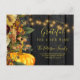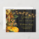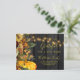 Moderne rustikale, elegante Erntedank Familie bewegende Postkarte mit einem wunderschönen Herbst-Blumenstrauß mit Kürbis und einem goldfarbenen, schicken Typografie-Drehbuch auf dunkelbraunem Holzhintergrund.