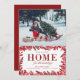 Teilen Sie uns mit, was Sie gerade gemacht haben! Mit einem familiären Foto und der Phrase "Wir sind in einer neuen Zuhause für die Ferien", mit handgezeichneter Vegetation auf der Vorderseite und Platz für einen längeren Urlaub Newsletter auf der Rückseite.
