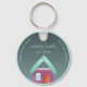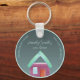 Personalisierbarer Schlüsselanhänger als Geschenk für neue Zuhause-Besitzer oder Hauswärmer-Party. Alternative elegante und bunte Gestaltung eines fiktionalen Traumhauses.