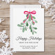Wechselst du in dieser festlichen Saison zu einer neuen Zuhause? Diese festliche bewegende Ankündigungskarte lasse Familie und Freunden Ihre neue Adresse kennen. Es ist mit Aquarellmalerei Mistletoe, rotem Band und Happy Holidays in eleganter Typografie dekoriert. Einfach anpassbar. Ändern Sie mithilfe des Entwurfstools die Textgröße, den Stil oder die Farbe. Original Wasserfarbe © Michele Davies.