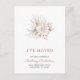 Neue Zuhause Boho Pink Roses Eukalyptus Dried Palm Moving Ankündigung Postcard... An der Vorderseite unseres botanischen Adresskartenwechsels befindet sich ein Blumenstrauß im bohenhaften Stil mit rosa Rosen, Eukalyptuszweigen und einem großen, getrockneten Palmenblatt. Auf der Kartenrückseite finden Sie alle aktualisierten Kontaktinformationen, die Ihre Familie und Freunde in Touch bleibe haben müssen. Der Beispieltext vorne und hinten wird in eleganter feminininer Schrift und Serifentypografie angezeigt. Sie können den Text ganz einfach mit Ihren eigenen Daten auf der Personalisierungsvorlage bearbeiten.