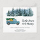 Neue Zuhause Vintag Blue Truck Weihnachtsbaumbeweg Ankündigungspostkarte