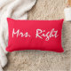 Frau Right bedroom dekorative Kissen. Auf der einen Seite steht "Mrs. Right" Auf der anderen Seite steht "Mrs. Always Right". Dieses Kissen ist rot und weiß.