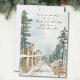 Aquarell landschaftliche 2-in-1 Urlaubsankündigung und Weihnachtskarte mit friedlicher Landschaft von Landweg, Kiefern und Waldvögeln inklusive Eule und Rotkehlchen auf den Zaunpfosten. Die Formulierung lautet "Ihnen Frieden und Freude aus unserem neuen Hals des Waldes wünschen" und die Vorlage ist bereit für Sie mit Ihrer Nachricht und neuen Adresse personalisieren.