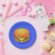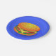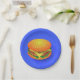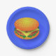 Dieser Entwurf ist ein frischer Hamburger. Der Hamburger hat Fleisch, Käse und Soße. Dieser neue Hamburgerentwurf schaut groß auf diesem PapierTeller
