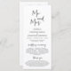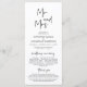 Die neue mr und mrs, Elegant Modern Minimalistisch, Black Script, Hochzeitsfeier Programmkarte. Es ist mit Scrollakzent entworfen, der personalisiert werden kann mit benutzerdefiniertem/personalisiertem Text für Ihr Brautparty, Zeremonie Details, Gedenkhinweise und Dankeschön-Nachricht. Wenn Sie weitere Programmkarten-Typen und -Größen suchen, durchsuchen Sie bitte unseren passenden Programmkartenabfrageabschnitt.
