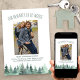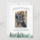 Foto Moving Announcement-Karte, die Sie zum Beispiel mit einem Selfie oder einem Bild Ihrer neuen Zuhause anpassen können. Das Design zeichnet sich durch eine Aquarellwaldgrenze von Kiefernbäumen aus. Der Titel lautet "unser neuer Hals des Waldes" (den Sie bei Bedarf in "meinen neuen Hals des Waldes" bearbeiten können). Sie können den Rest des Textes auch mit Ihrem Namen, Ihrer neuen Adresse und allen zusätzlichen Informationen personalisieren, die Sie gewollt haben.