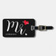 Moderne, elegante und trendige Gepäckmarke für das MR. Design-Features kalligrafisches Skript ''MR'' in weißer Farbe auf schwarzem Hintergrund gefolgt von dem neuen Nachnamen. Perfektes Geschenk für Neugeborene. Personalisieren Sie Ihre Kontaktdaten und das Jahr der Hochzeit. Matching MRS. verfügbar.