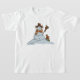 grundlegendes Weiß scherzt die T - Shirts, die ein feastive Winterfeiertagsbild eines jungen Jungen kennzeichnen, der einen lustigen schauenden Snowman macht. exklusiver Entwurf durch Frank glerum Art.