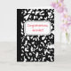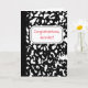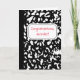 Diese personalisierte Grußkarte ist bereit, mit Ihrer eigenen Nachricht auf der Vorderseite und im Inneren so angepasst zu werden, dass Sie sie für jeden Anlass nutzen können. Diese Karte hat das Aussehen eines klassischen Notizbuches aus schwarz-weißem Marmor, mit einem Platz, um Ihre eigene Nachricht in roter Schrift auf einem weißen, etikettierten Hintergrund zu verfassen. Das Innere hat das Aussehen eines Notizbuches mit gehobenen Linien und Ihre Nachricht in schwarzer Schrift. Mit seinem akademischen Stil ist es eine perfekte Karte, um einem neuen Lehrer zu gratulieren oder eine persönliche Danksagung an Ihren Lehrer am Ende des Schuljahres zu schreiben.