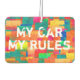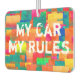Geschenk des Autobesitzers. Ein leuchtendes Muster mit vielen Farben mit der Meldung "Mein Auto - Meine Regeln"