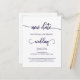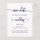 Neues Datum verschoben Hochzeit Navy Blue Script Postkarte