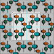 Neues Design von Vintagem Retroblau, grün und orange auf grauem Hintergrund, Stoff.
