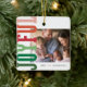 Ein buntes Holiday Foto Keramik Ornament mit kühnen Typografien und einem anpassbaren Foto und Text. Feiern Sie die Aufnahme Ihres neuen Familienmitglieds!