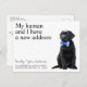 Mein Mensch und ich haben eine neue Adresse! Lass Deinem besten Freund, dass er mit dieser niedlichen und lustigen Liebling-Bewegungs-Karte bekannt geben kann. Personalisieren Sie die Namen des Hundes oder der Katze und Ihre neue Adresse. Diese schwarze labrador Hunde bewegende Ankündigung ist ein Muss für alle Labrador Liebhaber und Hundefreunde. COPYRIGHT © 2020 Judy Burrows, Black Dog Art - Alle Rechte vorbehalten. Neue Ankündigung zum Umziehen von Adressdaten im schwarzen Labor Postkarte