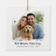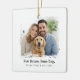 Ein schick quadratisches Keramik-Ornament mit einem malerischen Pinselstrich-Foto-Fenster und einer kühnen "Hitched & Bewitched"-Beschriftung. Fügen Sie Ihre Namen und das Jahr darunter, um den Moment zu markieren. Das saubere Schwarz-Weiß-Aussehen schmeichelt Hochzeitsporträts oder Verlobung und Paare mit beliebigen Baum- oder Geschenkpackungen. Ideal für Jungvermählte, Jubiläen oder einen romantischen Sake, der während der ganzen Saison auf einem Stand zu sehen ist.
