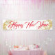 Dieses Holiday Banner wird im Indoor-Stil gezeigt, in Weiß mit rotem "Happy New Year"-Text in einem extravaganten Drehbuch mit zwei goldfarbenen Wirbel von Sternen auf jedem Ende gezeigt. Wählen Sie aus dem Innen- oder Außenbereich, mit oder ohne Kräutern. Passen Sie an oder kaufen Sie nach Ihren Vorstellungen.