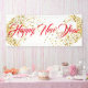 Dieses Holiday Banner wird im Indoor-Stil gezeigt, in Weiß mit rotem "Happy New Year"-Text in einem extravaganten Drehbuch mit zwei goldfarbenen Wirbel von Sternen auf jedem Ende gezeigt. Wählen Sie aus dem Innen- oder Außenbereich, mit oder ohne Kräutern. Passen Sie an oder kaufen Sie nach Ihren Vorstellungen.