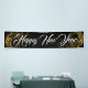 Dieses Holiday Banner wird im Indoor-Stil gezeigt, Schwarz mit weißem "Happy New Year"-Text in einem extravaganten Drehbuch mit zwei goldfarbenen Wirbel von Sternen auf jedem Ende. Wählen Sie aus dem Innen- oder Außenbereich, mit oder ohne Kräutern. Passen Sie an oder kaufen Sie nach Ihren Vorstellungen.
