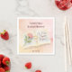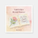 Machen Sie ihr Brautparty mit diesen niedlichen Servietten ganz besonders. Das Aquarellbild besteht aus einem offenen Buch mit einer rot-rosa Rosa Rose, die auf den Seiten liegt, und einem goldenen Verlobung-Ring, der so ausgerichtet ist, dass er einen Herzschatten bildet. Der Titel lautet: Ein neues Kapitel beginnt! Es gibt Platz für ihren Namen und das Datum der Dusche.
