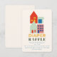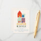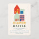 Neues Kind auf dem blockneutralen Baby Dusche Thema Windelpreisverlosung Ticket mit Darstellung von Häusern und Gedicht.