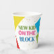 Neues Kind auf der Blockfarbendusche Pappbecher