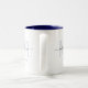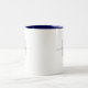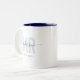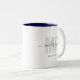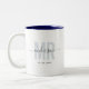 Niedliches, modernes Kaffee-Tasse-Sprichwort MR in moderner Typografie in staubblau mit Ihrem Familiennamen in trendiger Schriftzeichen-Kalligraphie auf einer zweifarbigen Kaffee-Tasse. Das dunkelmarineblau-Interieur ist sehr schön, aber in vielen weiteren Farben erhältlich.