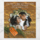 Goldenes Weinetikett mit individuellem Foto und einem Kiefernzweig mit Etikett. Schön für ein erstes Weihnachten zusammen.