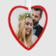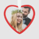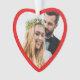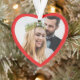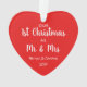 Niedliche Weihnachtsschmuck zum Gedenken an Ihr erstes Weihnachtsfest verheiratet. Auf der Vorderseite füllt Ihr Bild einen roten, herzförmigen Rahmen. Auf der anderen Seite können Sie die Ausdrücke "1. Weihnachten", "Mr. & Mrs." personalisieren und Ihre Namen und das Jahr personalisieren, alles in weißer Typografie vor einem roten Hintergrund.