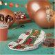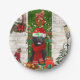 Neufundland Hunde Weihnachten sitzend draußen geschmückt Zuhause mit Weihnachtskranz, Weihnachtsbaum ist eine perfekte Weihnachtsgeschenkidee für Hundefreunde.