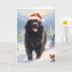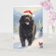 Das farbenfrohe Design eines Neufundland Hundes mit einer Weihnachtsmannmütze, die durch die schneebedeckten Berge geht und wünscht frohe Weihnachten.
