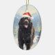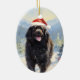 Das farbenfrohe Design eines Neufundland Hundes mit einer Weihnachtsmannmütze, die durch die schneebedeckten Berge geht und wünscht frohe Weihnachten.