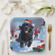 Neufundland läuft im Schnee mit Weihnachtshut Pappteller