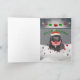 Zwei Neufundland-Welpen kleideten für die Weihnachtsfeiertage in den Weihnachtsmannmützen, während, eine Zuckerstange zu halten eine Weihnachtskarte ist-, die Ihnen a wünscht, "Newfy Weihnachten." an