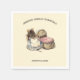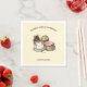 Papier-Servietten für eine Babydusche mit einer neugeborenen Maus in den Armen ihrer Mutter, während sie drei Kinder aufnimmt, die in der nahen Krippe rocken. Passen Sie den Namen des neuen Add- und Geburtstags- oder Party-Standorts an.