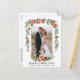 Die elegante Watercolor Winter Floral Neu gezogenes Foto Merry Christmas Card beinhaltet wunderschöne Aquarelltaschen, botanische Vegetation, Winterpflanzen, heilige Beeren, Rosen, Baumwolle, Kiefernzapfen und blaue Beeren. Goldrahmen.