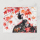Neugierige Kätzchen im Herbst Blätter in chinesisc Postkarte