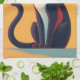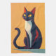 Eine schwarz-weiße, rückwirkende Katze, die Katzen aus den 1950er Jahren ähnelt. Gelbe Augen, die aus Neugier offen sind, schaffen ein niedliches und charmantes Küchentuch.