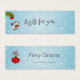 Eine schlanke Visitenkarte, die Sie als Geschenkmarke verwenden können. Ein lustiges und niedliches Weihnachtsdesign. Eine schelhafte und verspielte weiße siamesische Katze. Sie schaut sich eine Weihnachtsbaumdekoration an, die an einem Kiefernzweig hängt und fragt sich, ob sie frech sein und damit spielen sollte oder nicht. Im Text heißt es frohe Weihnachten in einem skurrilen Schriftart. Set auf blauem Hintergrund mit weißen Schneeflocken. Der gesamte Text ist leicht auf Ihren Anzug angepasst. Auf der Vorderseite steht: ein Geschenk für Sie. Auf der Rückseite steht: Frohe Weihnachten, mit deinem personalisierten Namen.