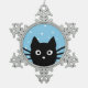 Neugierige Schwarze Katze | Niedlich Peeking Kitty Schneeflocken Zinn-Ornament