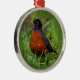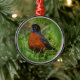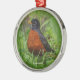 Neugieriger amerikanischer Robin im Gras Silbernes Ornament
