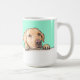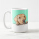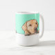 Eine lebendige Comic-Illustration, die den spielerischen Geist eines Labrador Retriever einfängt. Der Labrador, der Star unseres Stückes, wird mit kühlen, dynamischen Linien gezeichnet, die seine energetische und freundliche Natur hervorheben. Sein Fell ist glänzend gelb und in kräftigen, flachen Farben gehalten, die für die Comic-Kunst charakteristisch sind.