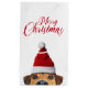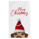 Niedliche frohe Weihnachtsanimation: Neugieriger Hund mit einer Weihnachtsmannmütze. Saisonurlaub Gruß in modernen typografischen Briefen geschrieben.