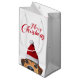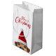 Neugieriger Niedlicher Hund mit Weihnachtsmannmütz Kleine Geschenktüte