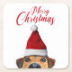 Neugieriger Niedlicher Hund mit Weihnachtsmannmütz Rechteckiger Pappuntersetzer