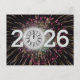 Neujahr 2026 Feuerwerke und Monduhr Postkarte