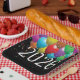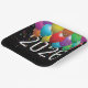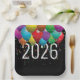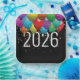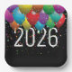 Farbenfrohe Party Ballons und Sternkonfetti auf schwarz für Neujahr 2026 Party. Das Jahr kann bearbeitet werden.