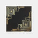 Dieses Design zeigt ein symmetrisches geometrisches Muster mit Art-Déco-Einflüssen, das luxuriöse Goldtöne vor schwarzem Hintergrund aufweist.