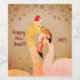 Liebliches Weinetikett mit Flamingo-Vögeln, Weihnachtsmannmütze und Schneeflocken. Einfach zu individuellem Text und Jahr hinzufügen.